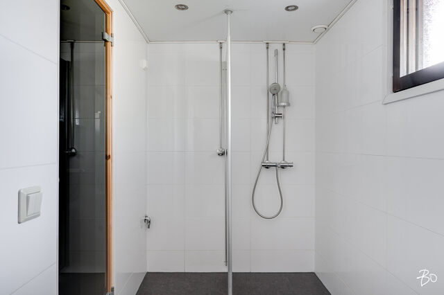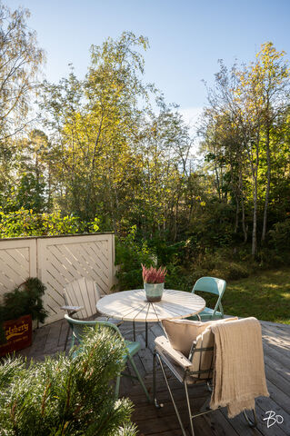 Alakerrassa sijaitsevat kaksi makuuhuonetta tarjoavat rauhalliset tilat levähtämiseen. Toisesta on kulku suoraan terassille, joka on toteutettu laadukkaasta lehtikuusesta ja upotettuine valaistuksineen kutsuu viihtymään ulos aikaisesta keväästä pitkälle syksyyn. Oman saunan lempeät löylyt ja vuonna 2012 uusittu kylpyhuone lattialämmityksineen viimeistelevät kokonaisuuden.