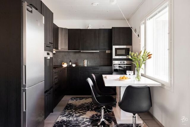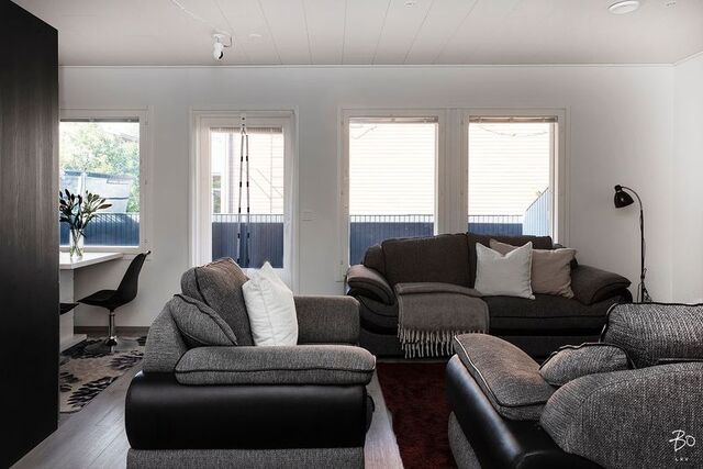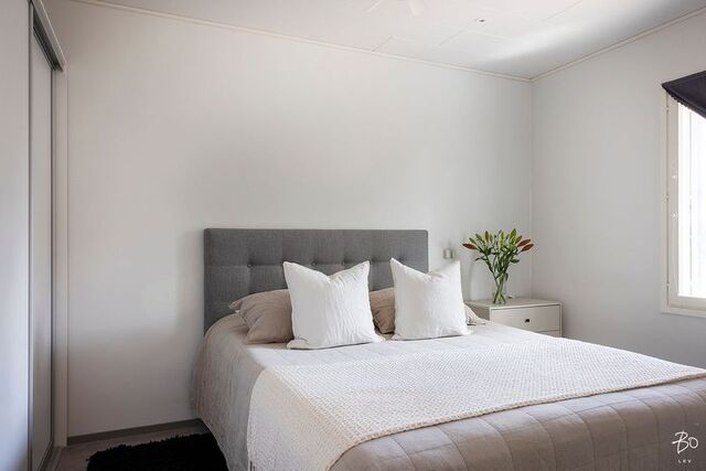 Astuttaessa sisään huomaat välittömästi asunnon vaaleat sisustussävyt, jotka luovat valoisan ja raikkaan tunnelman. Skandinaavinen tyyli on tuotu harmonisesti esille jokaisessa huoneessa, korostaen yksinkertaisuutta ja tyylikkyyttä. Käytännölliset huonetilat mahdollistavat monenlaiset sisustusratkaisut, mikä tekee tästä kodista sopivan pienelle perheelle tai pariskunnalle.