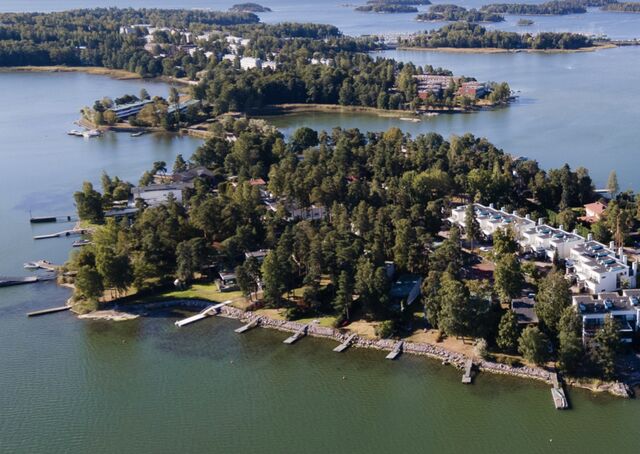 Ylivoimaisesti Helsingin parhaimpia sijainteja, jonne äänet eikä melu kantaudu ja talosta on upeat merinäköalat.