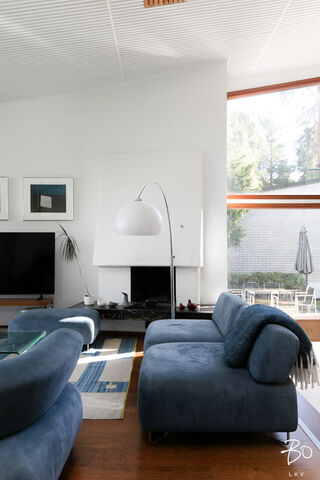 Talossa kaksi takkaa, olohuoneessa ja alakerrassa.