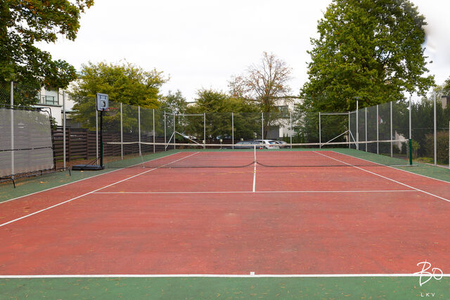 Yksityisessä pihapiirissä on asukkaiden käytössä tenniskenttä ja autotalli.
