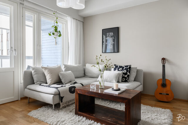 Kodissa on hyvät vuokralaiset valmiina ja he haluaisivat jatkaa asumistaan. Koti on oikein siistissä kunnossa ja sijoittuu sisäpihan puolelle. Olohuone ja keittiönurkkaus muodostavat yhtenäisen tilan. Tilavaan makuuhuoneeseen mahtuu vaikka työpöytä. Olohuoneesta käynti lasitetulle parvekkeelle, jolla kaihtimet. Tilavalla parvekkeella on huoneistovarasto. Omassa saunassa saa makoisat löylyt.