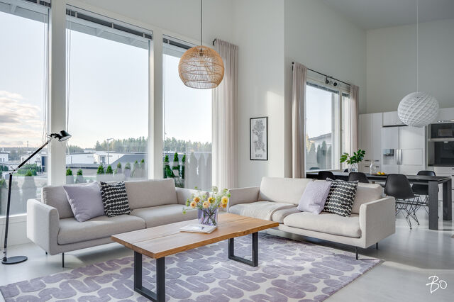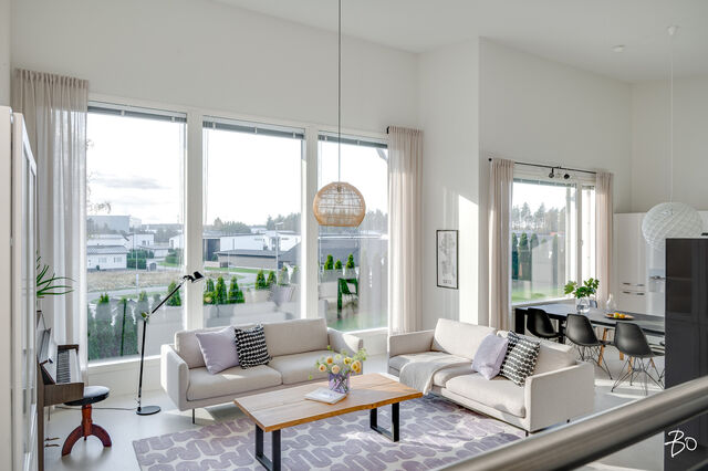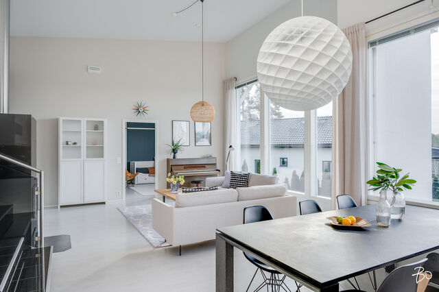 On koteja, jotka hurmaavat jo ensisilmäyksellä joissa isot ikkunat tuovat valon osaksi sisustusta ja avara keittiö kutsuu kokkaamaan. Tämä koti on juuri sellainen.