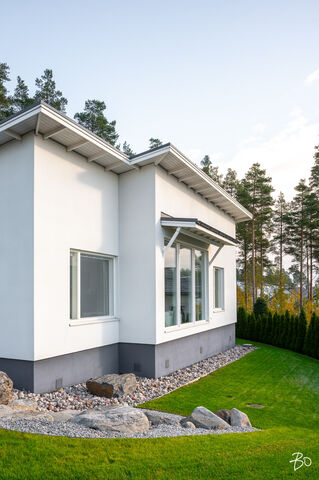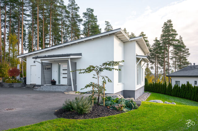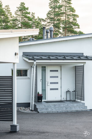 Vuonna 2017 valmistunut, yhteen tasoon rakennettu omakotitalo tarjoaa harmonisen yhdistelmän ajattomuutta, toimivuutta ja lämpöä. Kodin arkkitehtuuri luo ilmavan ja kutsuvan tunnelman heti sisään astuessa.