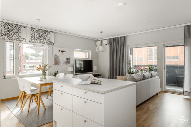 Sijainti on erinomainen: aivan vieressä sijaitseva Logomo tarjoaa kulttuuria ja tapahtumia, ja uusi silta vie suoraan keskustan suuntaan kävellen tai pyörällä. Alue on kasvava ja moderni, yhdistäen urbaanin elämän ja rauhallisen asuinympäristön.