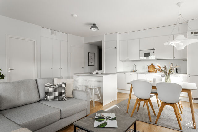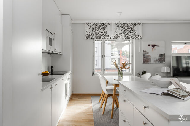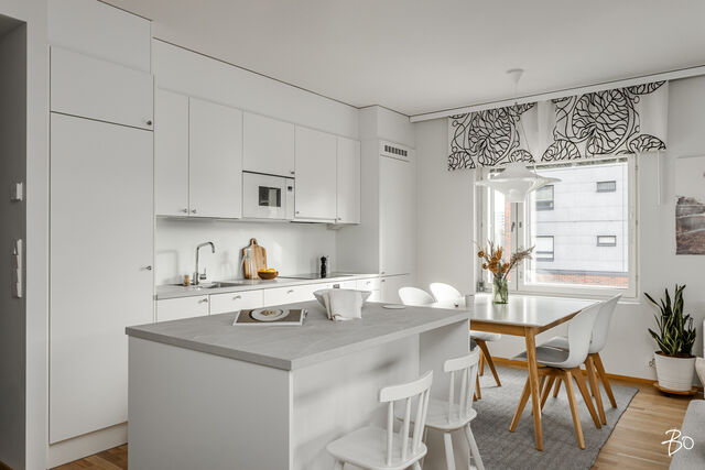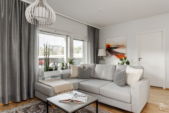 Veturikatu 12:ssa, aivan Logomon naapurissa, sijaitsee upea ja valoisa kolmio, joka tarjoaa modernia asumista parhaimmillaan. Vuonna 2023 valmistunut koti on toisessa kerroksessa ja sen 69 neliötä on käytetty tehokkaasti ja tyylillä.