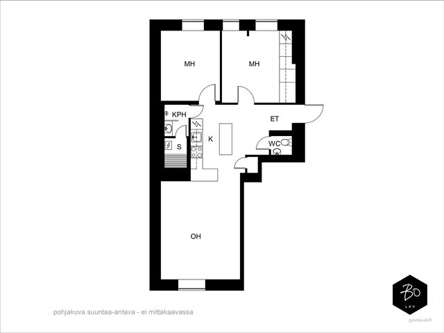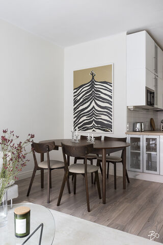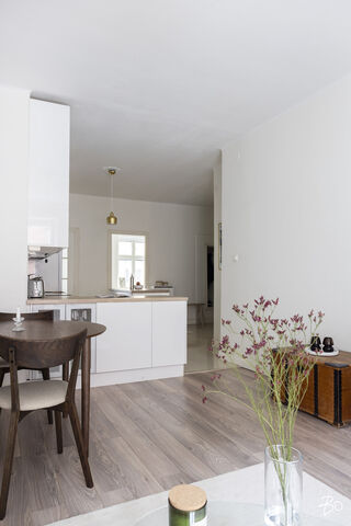 Tässä toisen kerroksen asunnossa on vaaleat sisustussävyt, jotka luovat valoisan ja raikkaan tunnelman. Asunnon tilava olohuone on täydellinen paikka rentoutua ja keittiö on hyvin varusteltu vastaamaan arjen tarpeisiin. Asuntoon kuuluu myös kaksi makuuhuonetta. Erinomainen pohjaratkaisu mahdollistaa tilojen monipuolisen käytön.
