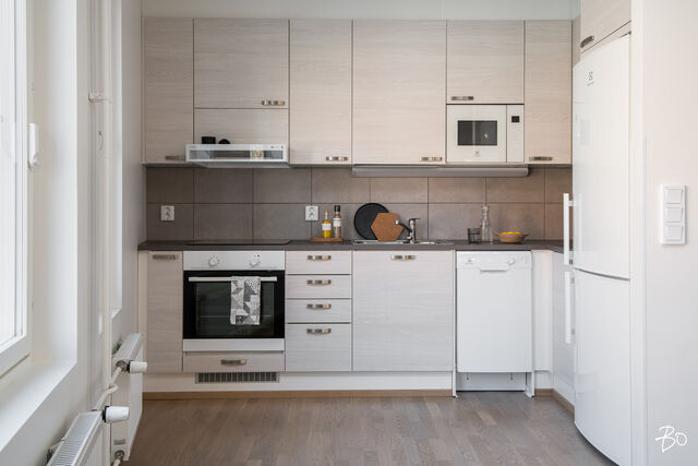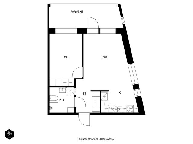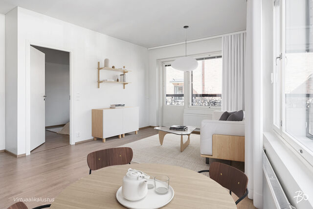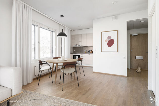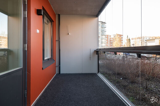 Tämä ensimmäisen kerroksen kaksio tarjoaa kodikkaan ja toimivan pohjaratkaisun, joka on täydellinen niin pariskunnalle kuin yksinasuvalle. Arjen viihtyvyyttä tuo valoisa olohuone ja selkeälinjainen avokeittiö, joka on varustettu nykyaikaisin kodinkonein. Huoneiston kruunaa tilava makuuhuone, joka takaa rauhalliset yöunet. Kylpyhuoneessa on tyylikkäät ja modernit pintamateriaalit, sekä tilavuutta lisäävä lasitettu parveke.