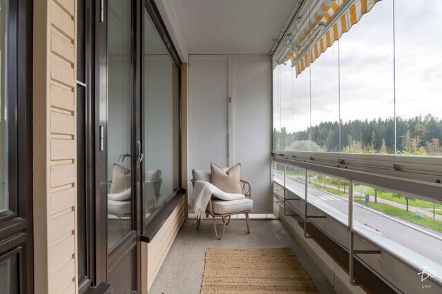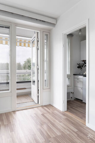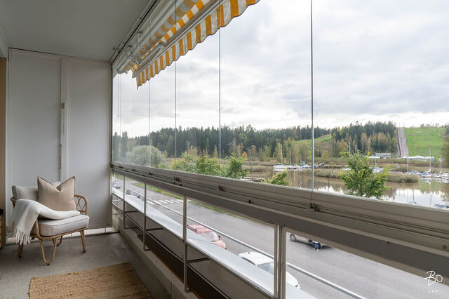 Tässä toisen kerroksen muuttovalmiissa asunnossa on iso koko huoneen levyinen lasitettu parveke, josta aukeaa etelään luontonäkymä perhospuiston yli Porvoonjoelle. Asunnon seinät sekä katto maalattiin ja keittiössä vaihdettiin kaapistot, pöytätasot, allas ja hana syksyllä 2025. Eteisessä on uusi kaapisto. Kylpyhuoneeseen mahtuu pesukone.