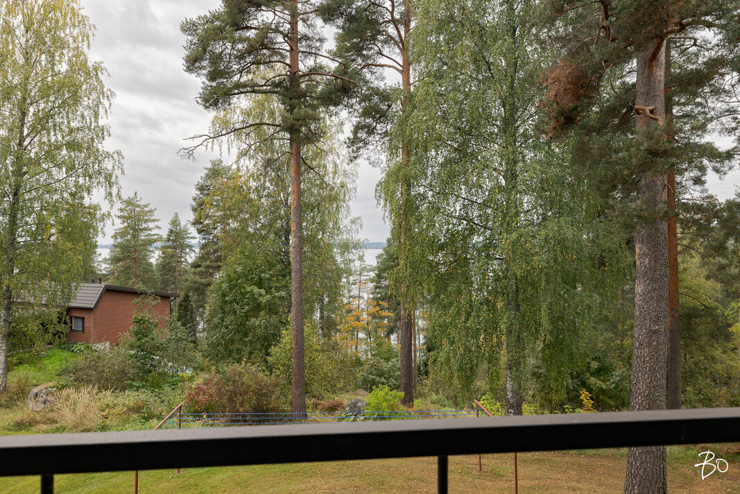 Taloyhtiö sijaitsee rauhallisella ja vehreällä alueella, jossa järvinäkymät tekevät ympäristöstä viihtyisän. Asunnon parvekkeelta on mahdollisuus nauttia upeista luontonäkymistä, jotka avautuvat kauniisti Vesijärvelle.