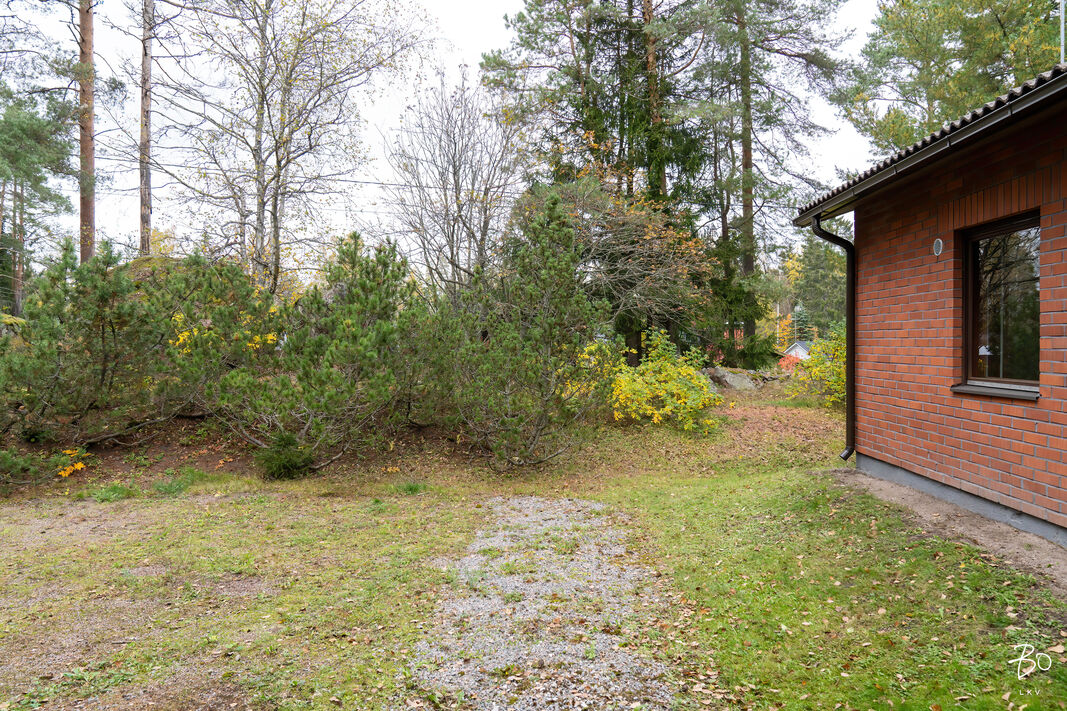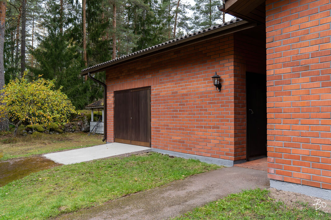 Talon oma 990 m² suojainen tontti sijaitsee päättyvän tien päässä, joten pihapiiri tarjoaa yksityisyyttä ja turvallisuutta. Pihalta löytyy myös tilava autotalli ja varasto, jotka tuovat lisää säilytys- ja harrastetilaa.