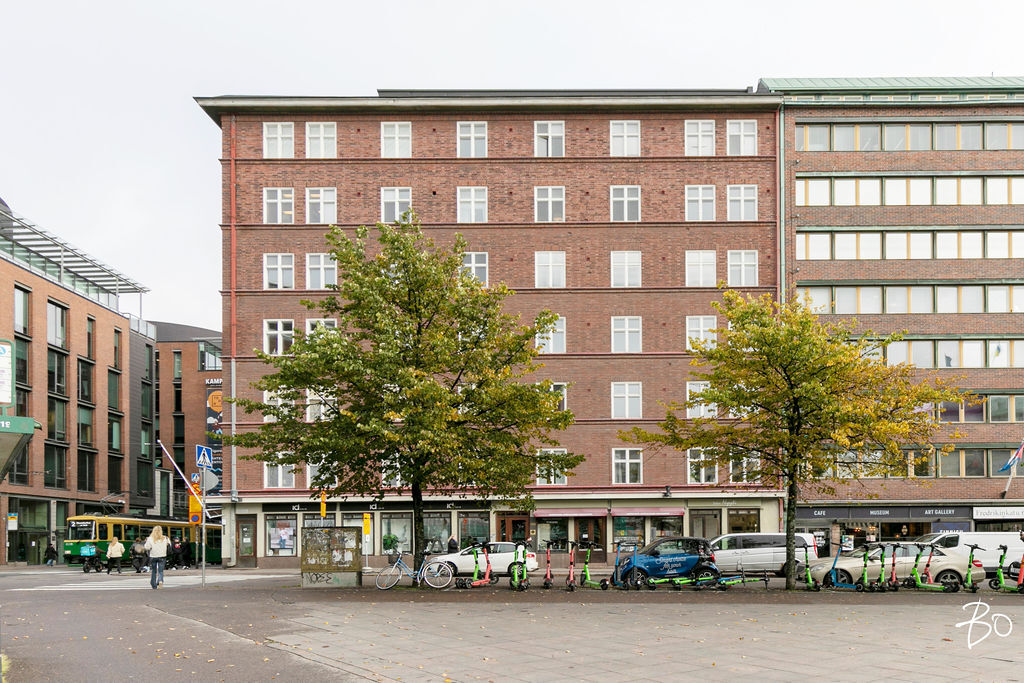 Vuonna 1932 valmistunut talo seisoo jykevänä Kampin ytimessä - osana Helsingin klassista kaupunkikuvaa, jossa kivijalkaliikkeet, raitiovaunut ja arkkitehtoninen arvokkuus kietoutuvat yhteen. Tämän kauniin tiilirakennuksen kolmannesta kerroksesta löytyy tilava huoneisto, joka huokuu historiaa ja tarjoaa harvinaisen mahdollisuuden luoda oma unelmakoti yhteen keskustan ikonisimmista osoitteista.