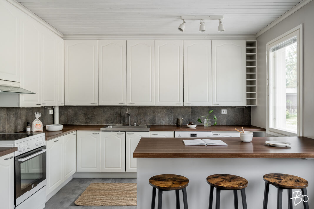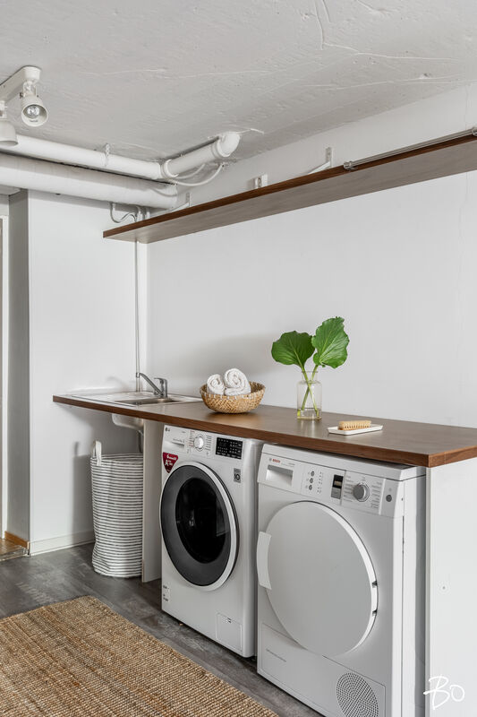 Varustus: pesukoneliitäntä, pöytätaso
