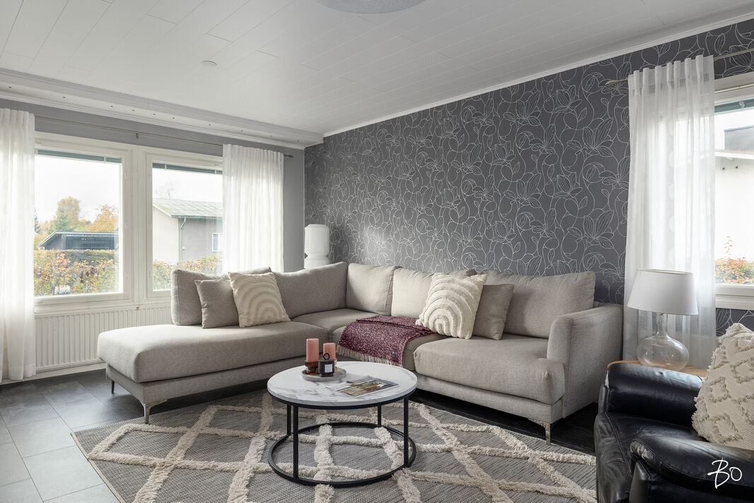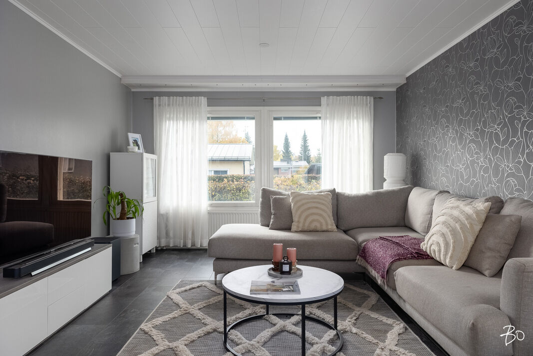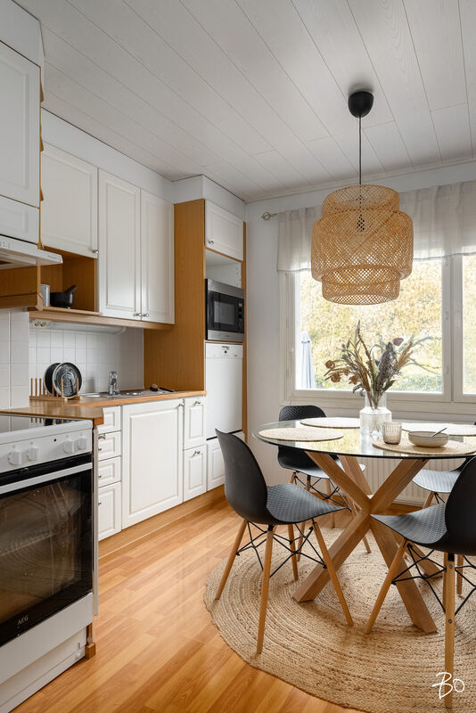 Tämä muuttovalmis koti yhdistää tilan, toimivuuden ja kodikkuuden. Tervetuloa ihastumaan!