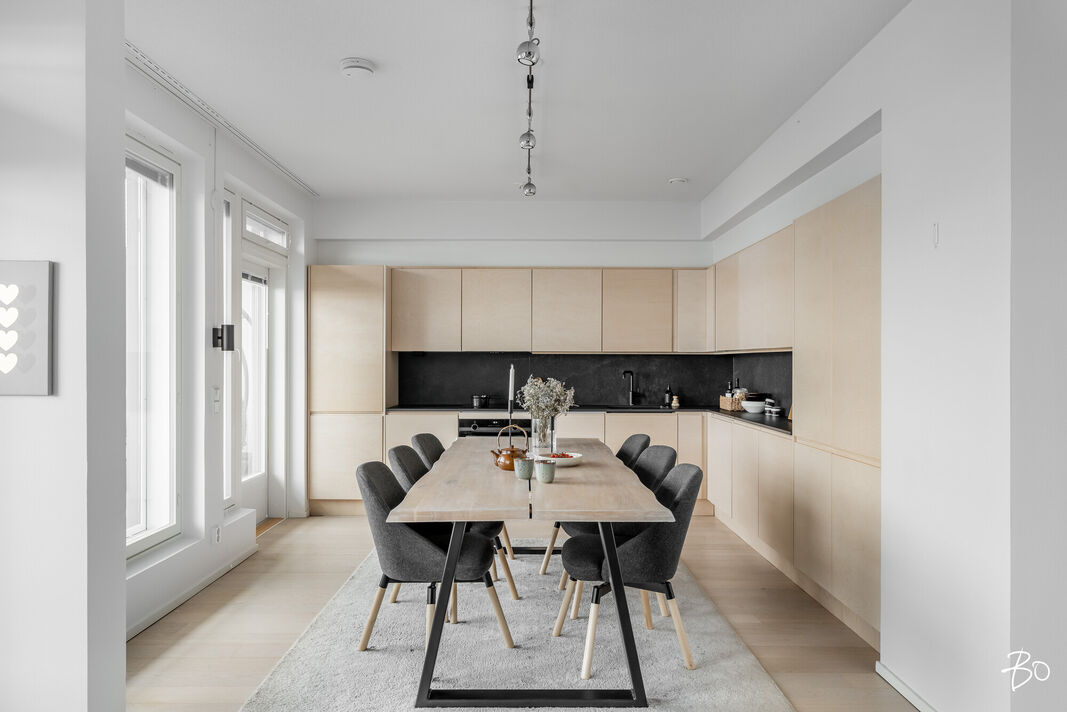 Varustus: jääkaappi/pakastin, astianpesukone, induktio liesi, kalusteuuni, liesituuletin, kivitasot, tilaa isommallekin ruokapöydälle.