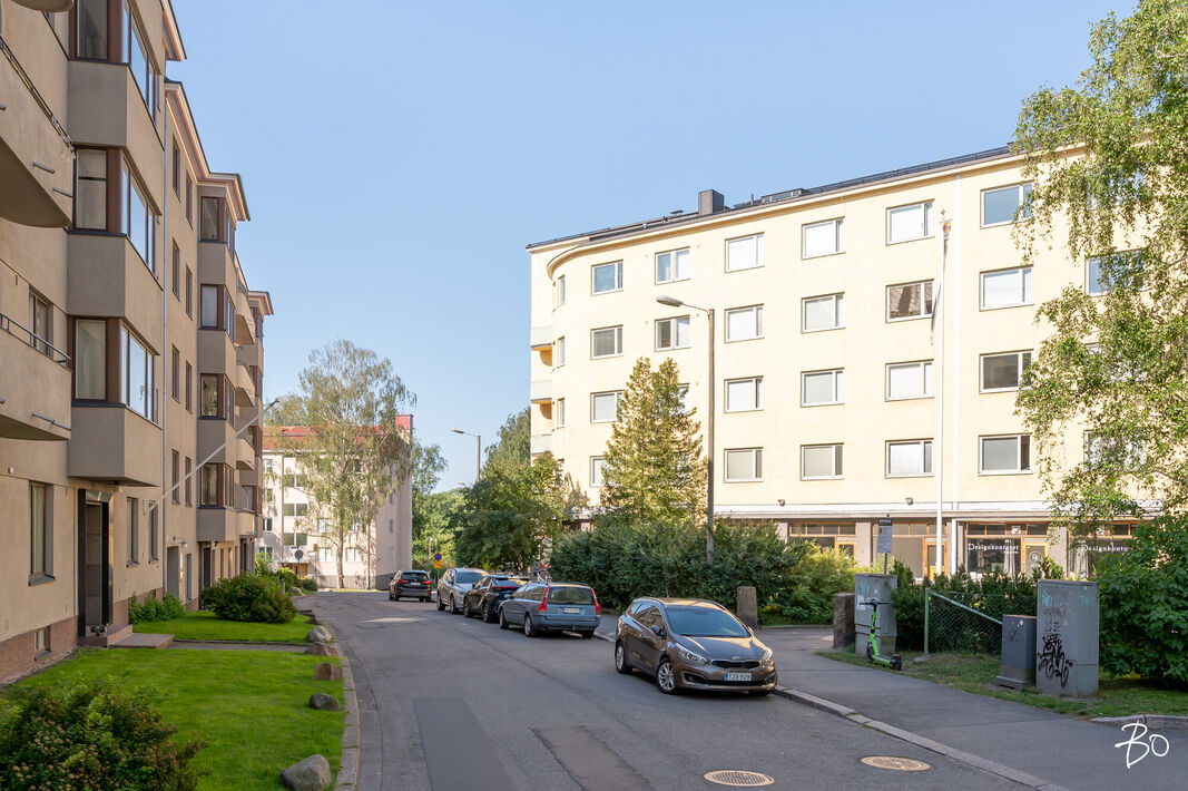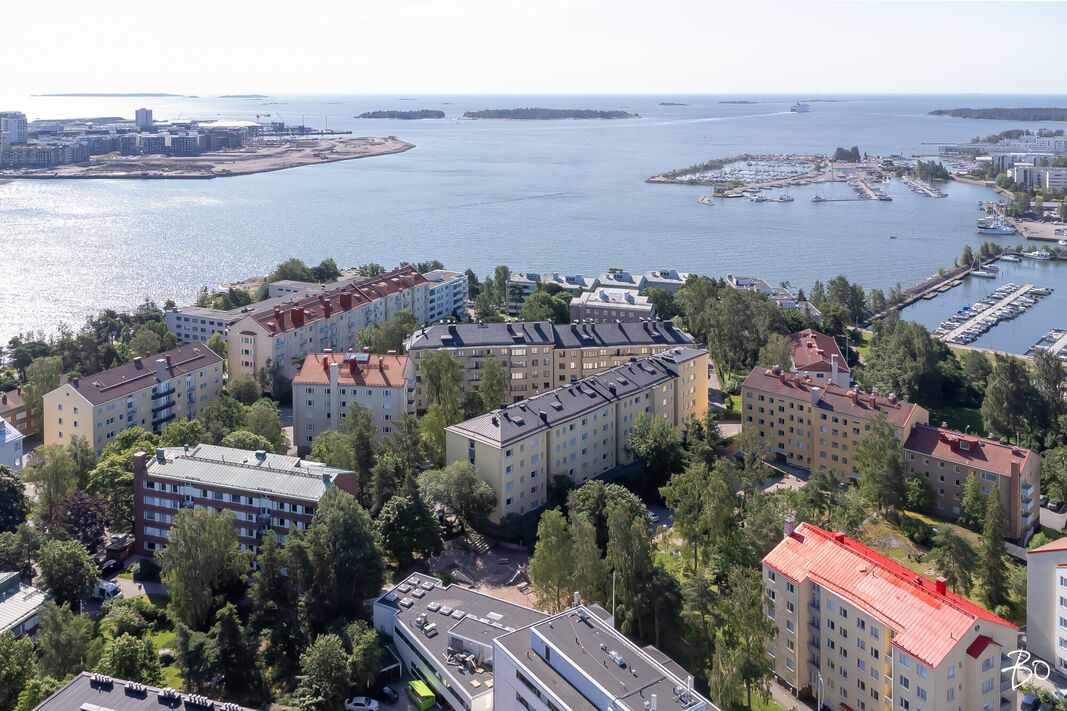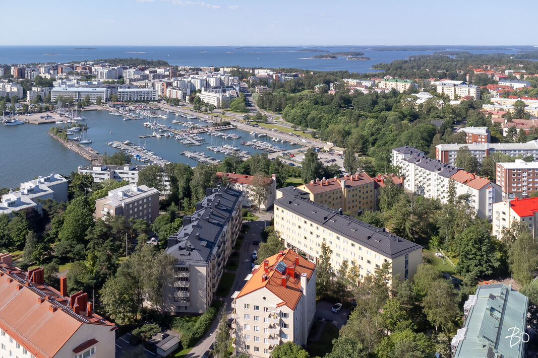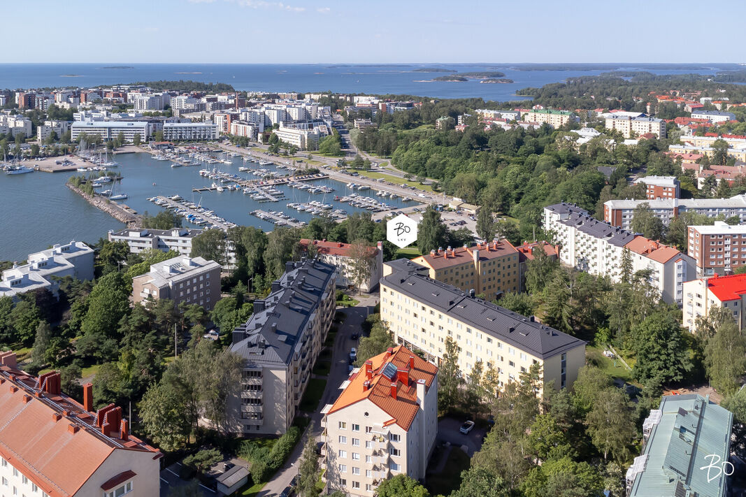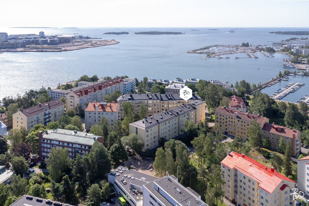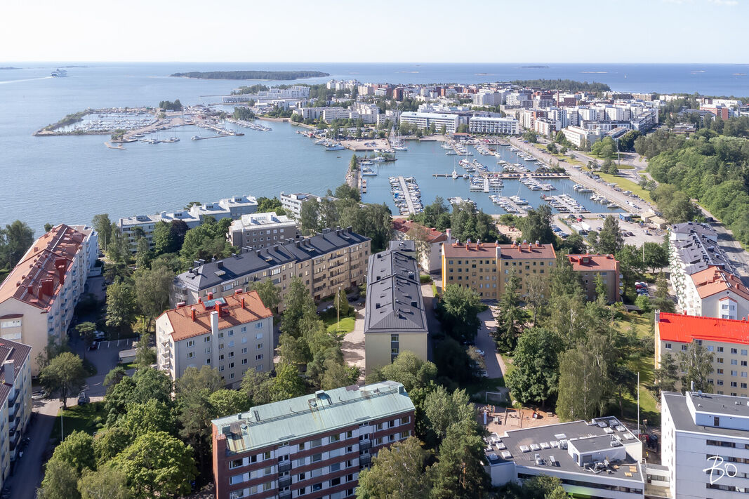 Upea sijainti merellisen Lauttasaaren sydämessä, kantakaupungin puoleisessa päädyssä, Lauttasaarentien lähellä. Tästä on vain pikainen pyrähdys ytimeen, puhumattakaan meren rannalle ja venesatamaan. Toisaalta, myös tuossa tuokiossa kipaiset vaikka Lauttikseen, josta löytyvät kaikki tärkeimmät palvelut (ruokakaupat, posti, ravintoloita ja kahvila) sekä tietysti metro. Läheltä kulkevat myös bussit, joihin on näpsäkkä hypätä kyytiin.
