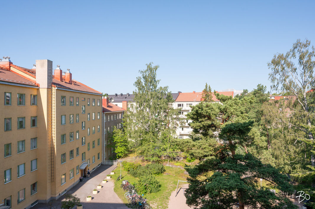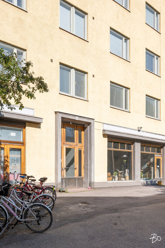 Isot huoneet ja niiden välissä halli tekevät miellyttävää ilmavuuden tuntua kuitenkaan menettämättä lainkaan 1940-luvun kuuluvaa viehättävää tenhoa. Huoneistoon tulvii ihanasti valoa ja sen tunnelma on hyvin kodikas. Vanha lautalattia yhdistää huoneet kauniisti toisiinsa. Huonekorkeus on 280 cm.