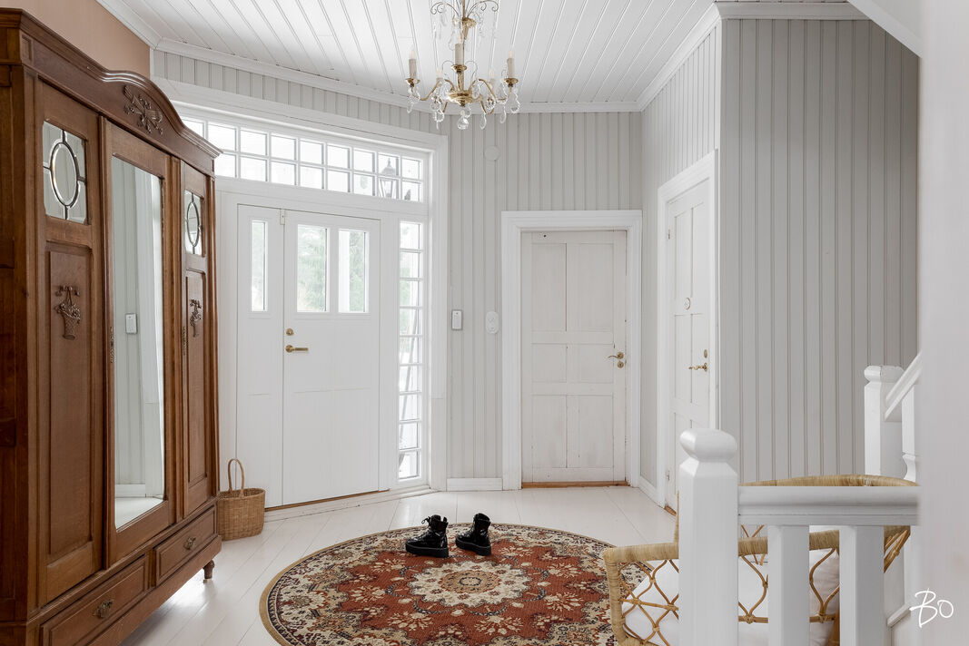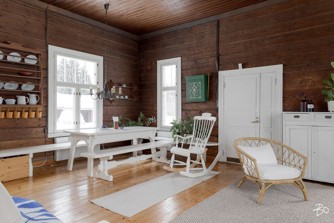 Tässä upeassa kokonaisuudessa yhdistyvät kodikkuus ja historia ainutlaatuisella tavalla. 1914 valmistunut hirsitalo kätkee sisäänsä tarinan toisensa jälkeen, luoden lämpimän ja arvokkaan kodin kauniiden vaihtuvien vuodenaikojen keskelle järven rantaan.