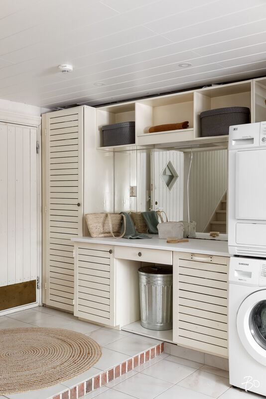 Varustus: pesukoneliitäntä, lattialämmitys, lattiakaivo, silityspöytä/taso, pyykkikaapit