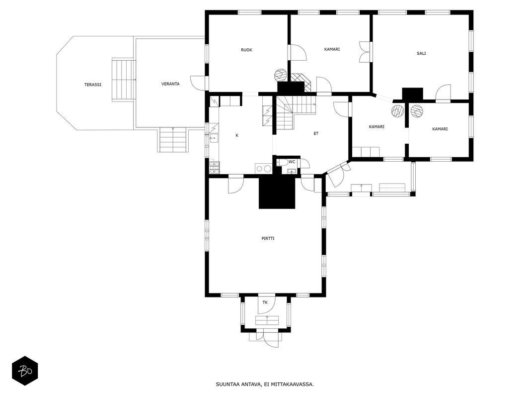 -Ulko-ovet uusittu 2019. Samalla lisätty ulko-ovi ruokasalista terassille.