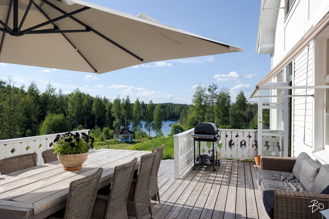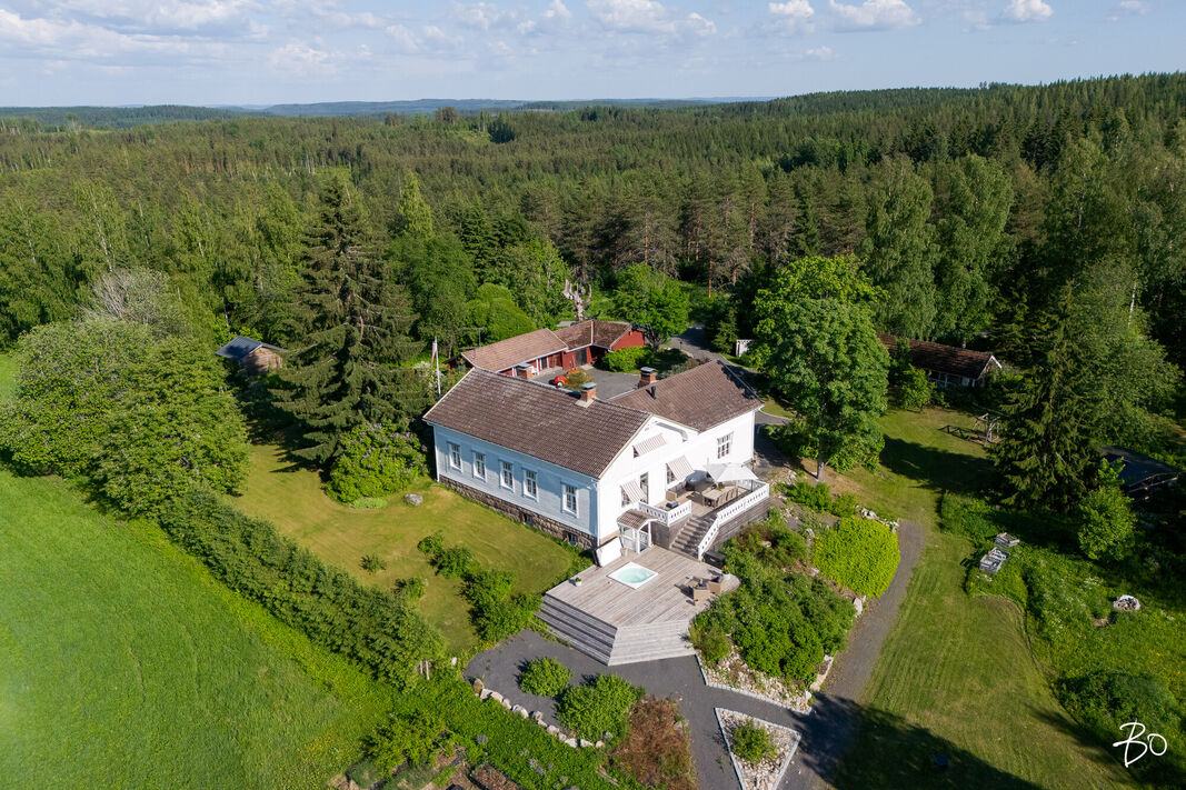 Tämä hienosti kunnostettu kartanomainen talo sijaitsee omassa rauhassaan yli 4 hehtaarin tontilla, joka on toteutettu huolella ja ammattitaidolla. Piha-alue suorastaan henkii historiaa ja tarjoaa monia mahdollisuuksia. Rantasauna sekä kaksi aittaa tuovat vielä lisäarvoa tähän jo itsessään upeaan kokonaisuuteen. Lisäksi tontilta löytyy kesäkeittiö/huvimaja, kanala, sepän paja ja riihi/vilja-aitta. Maalämpö pitää talon lämpimänä ekologisesti. Tulisijoja näiden seinien sisältä löytyy kaiken kaikkiaan 10 kpl.