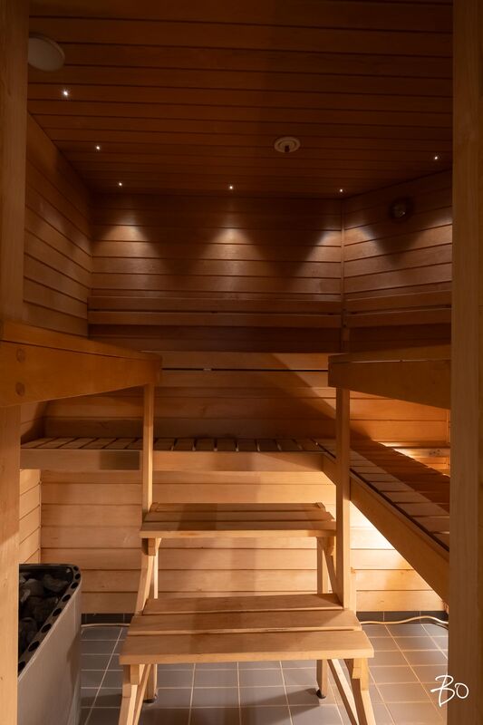 Huoneessa noin 120cm parvi, jonne helposti noustavat portaat.