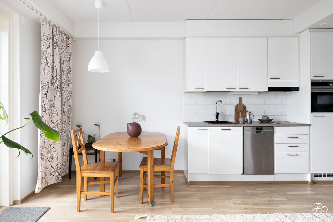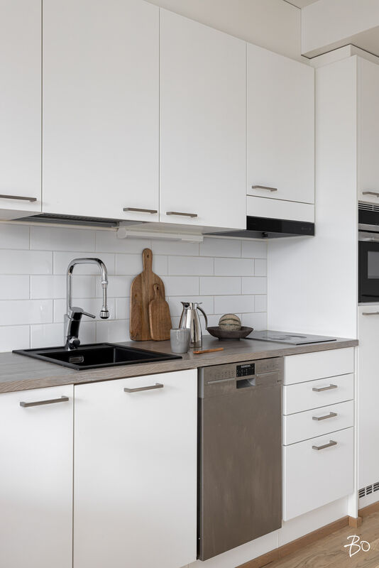Tämä valloittava yksiö sijaitsee ensimmäisessä kerroksessa ja tarjoaa harmonisen yhdistelmän nykyaikaisuutta ja mukavuutta. Asunto on sisustettu vaaleilla sävyillä, jotka lisäävät tilan valoisuutta ja avaruutta. Iso kylpyhuone on suunniteltu erityisen käytännölliseksi, ja sinne mahtuu kätevästi myös pyykkitorni, tehden arjesta huomattavasti helpompaa.