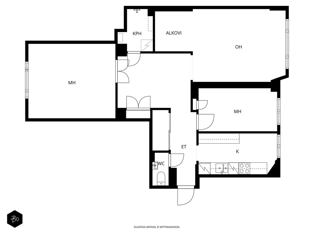 Mainittu pinta-ala saattaa tämän ikäisessä kohteessa (rakennettu ennen vuotta 1992) poiketa olennaisesti nykyisten standardien mukaan laskettavasta asuinpinta-alasta. Todellinen asuinpinta-ala voi tarkistusmittauksen jälkeen olla yhtiöjärjestyksessä, isännöitsijäntodistuksessa ja esitteessä mainittua pienempi tai suurempi. Isännöitsijäntodistuksen mukainen. Yhtiöjärjestyksen mukainen.