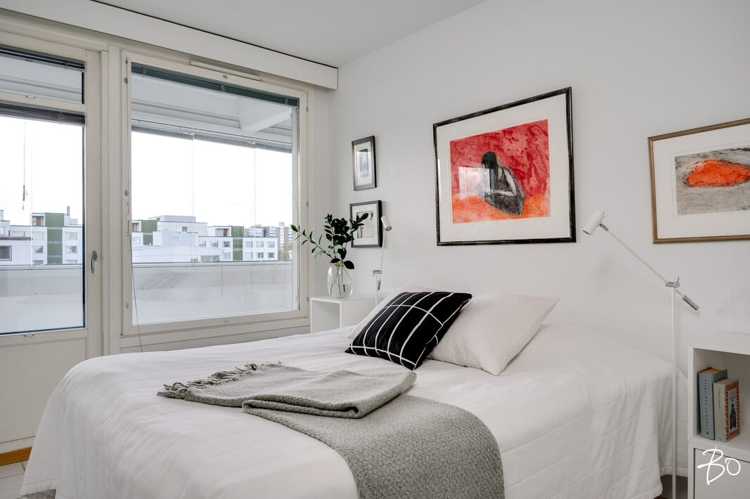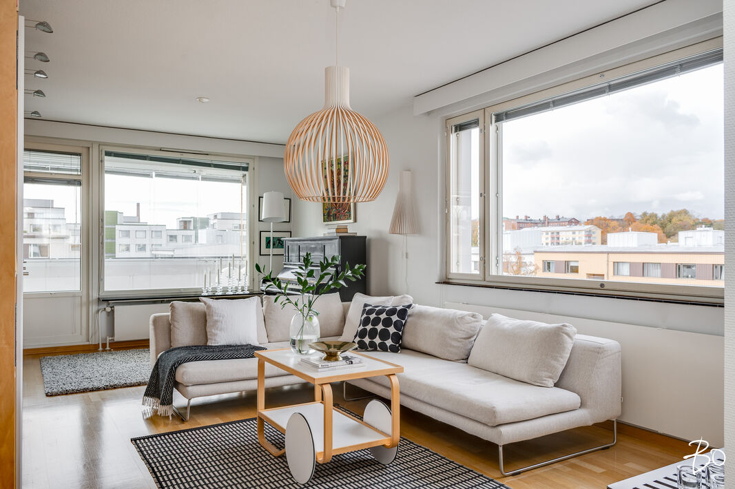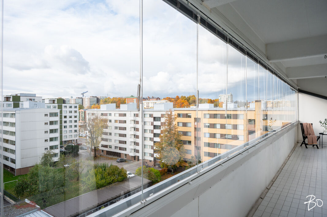 Tämä 91 m² kulmahuoneisto yhdistää tehokkaan tilankäytön, käytännöllisyyden ja tyylin. Asunnossa on kolme makuuhuonetta, joista kahdessa on liukuovikaapistot. Säilytystilaa asunnossa riittää isommallekin perheelle.