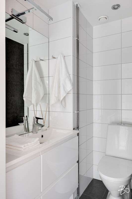 Kylpyhuone on raikkaan moderni ja varustettu pesukoneliitännällä sekä suihkulla, ja wc on sijoitettu omaan erilliseen tilaansa. Molemmat tilat on uusittu linjasaneerauksessa.
