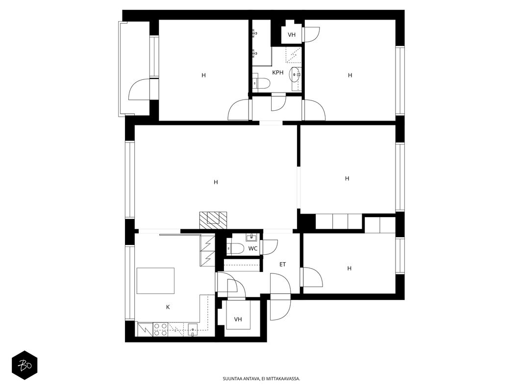 Tämä viihtyisä ja valoisa koti sijaitsee rauhallisessa ja arvostetussa Tammisalossa, pienkerrostalon ensimmäisessä kerroksessa. Asunnossa on erinomainen ja joustava pohjaratkaisu, joka tarjoaa paljon tilaa kasvavalle perheelle. Tarvittaessa saat tänne neljä erillistä makuuhuonetta, joten tilaa riittää niin kasvavalle perheelle kuin etätyötä tekevillekin. Kahdessa makuuhuoneessa on runsaasti tilaa ja valoa, kolmas toimii mainiosti työhuoneena tai lastenhuoneena, ja kirjasto/tv-huone muuntuu tarvittaessa vanhempien omaksi rauhalliseksi makuutilaksi.