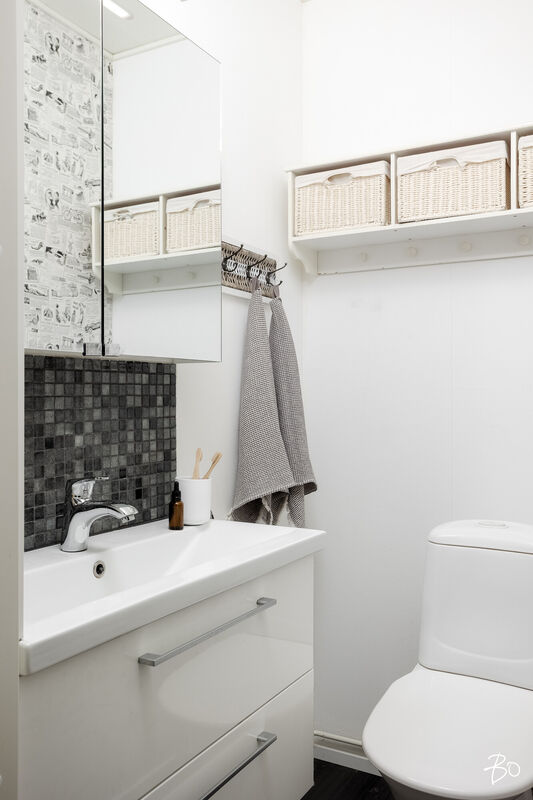 Seinämateriaalit: kaakeli, maalattu, tapetti