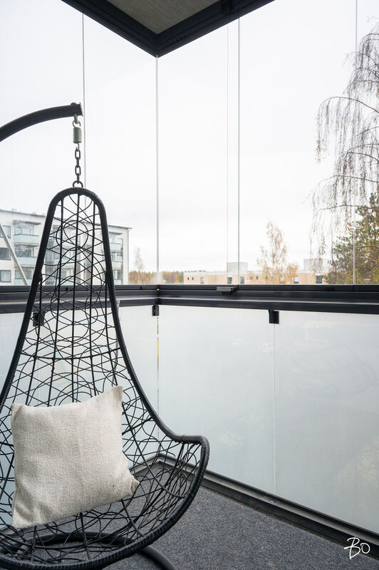 Mukavana lisänä on tilava, lasitettu parveke, joka tarjoaa viihtyisän lisähuoneen pitkälle syksyyn. Mahdollisuus ostaa myös kätevä piha-autopaikka.