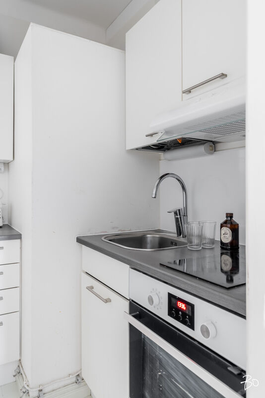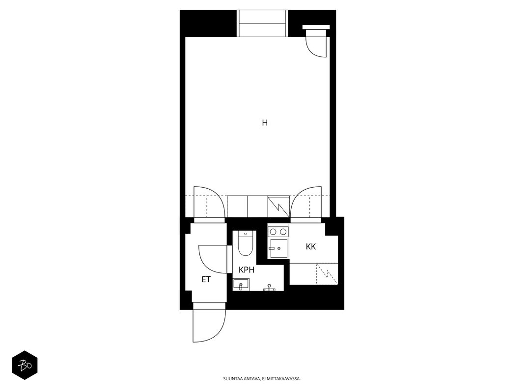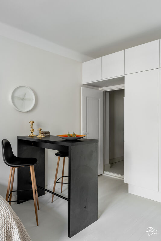 Kompakti asunto on suunniteltu tehokkaasti: keittosyvennyksessä on hyvin tilaa kokkailuun, kylpyhuone on raikas ja suihkulla varusteltu, ja säilytystilaa löytyy runsaasti. Asunto toimii erinomaisesti mittaansa suurempana kotina.