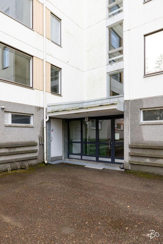 Asunto sijaitsee hyvin hoidetun kerrostalon ensimmäisessä kerroksessa, mutta ei kuitenkaan katutasossa.