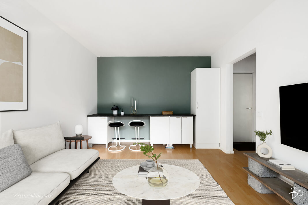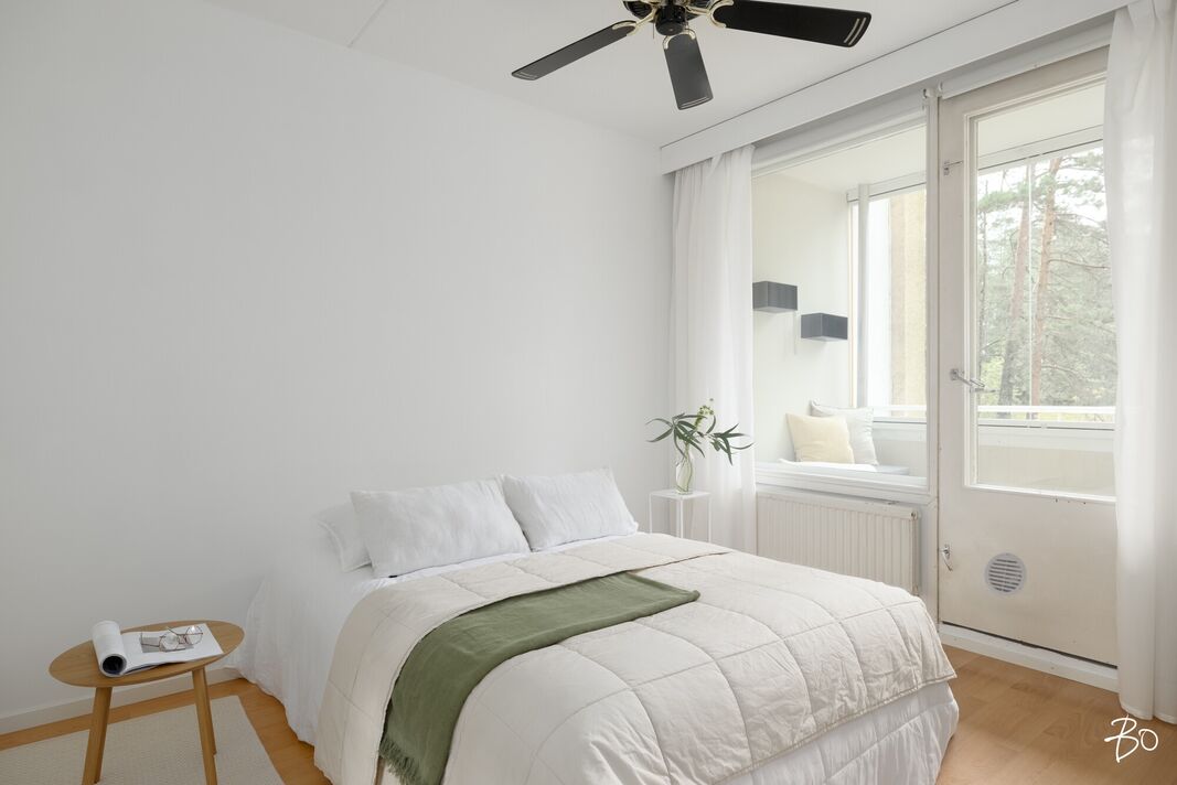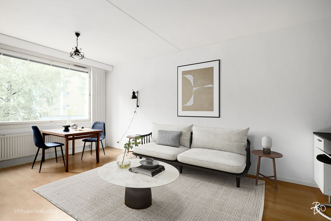 Heti sisään astuessa vaaleat sisustussävyt ja skandinaavinen tyyli hivelee silmää. Asunnon valoisa ilme korostuu kauniiden puistomaisemien avautuessa kaikista ikkunoista ja lasitetulta parvekkeelta, luoden rauhoittavan ja luonnonläheisen tunnelman. Tilavan ja monipuolisen olohuoneen kanssa asunto tarjoaa täydelliset puitteet arkeen. Kaiken kruunaa tyylikäs vuonna 2018 remontoitu keittiö kaapistoineen ja kodinkoneineen sekä laattalattioineen.