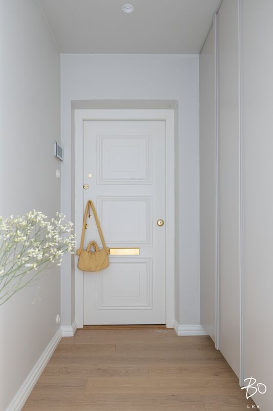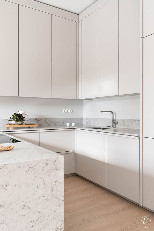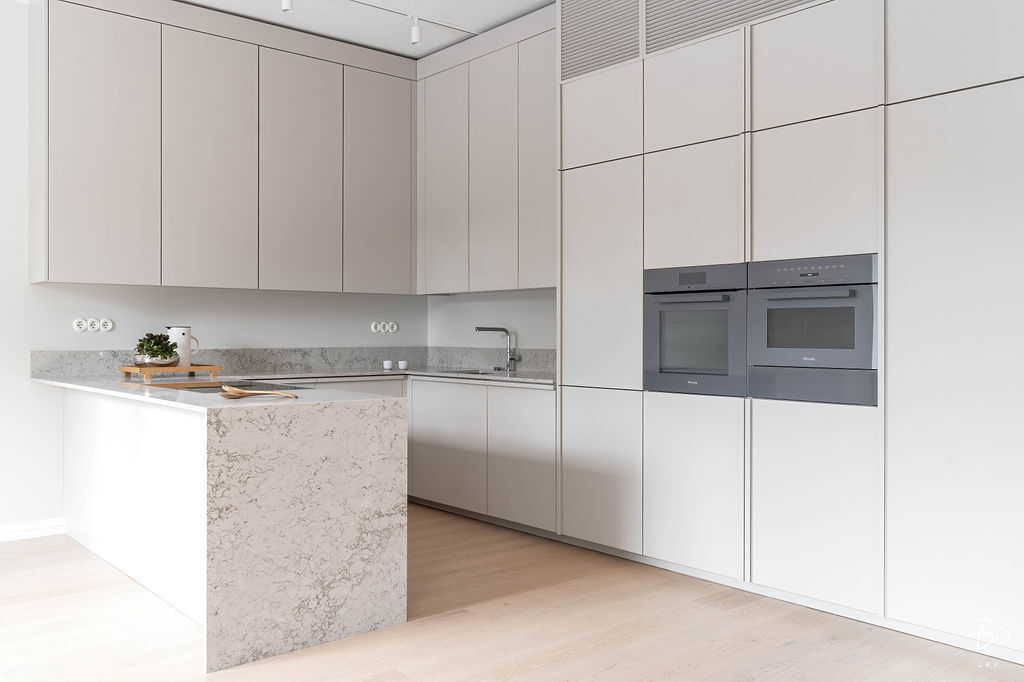 Keittiön ovet: Maalattu, puolihimmeä, sävy sama kuin seinäsävy