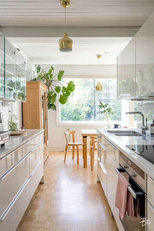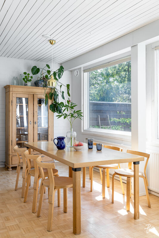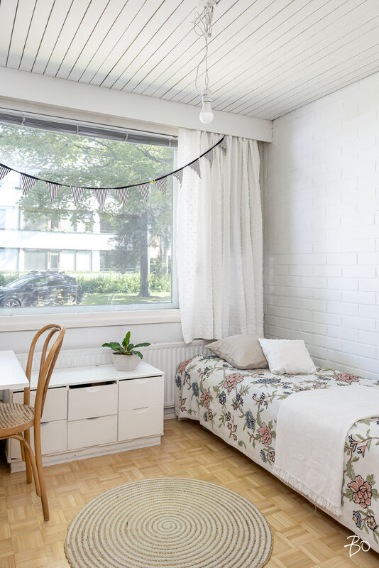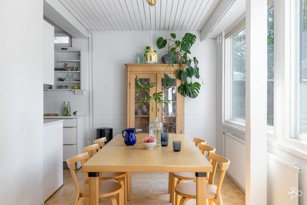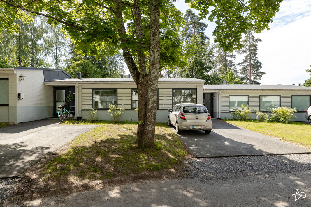 Tervetuloa tutustumaan tähän Arkkitehti Osmo Siparin suunnittelemaan, 1961 valmistuneeseen avaraan yksitasoiseen rivitaloasuntoon. Kodin sydän on osittain avoimen keittiön, ruokailutilan ja olohuoneen yhdistelmä. Kolme makuuhuonetta, kylpyhuone ja erillinen kodinhoitotila. Vehreä suuri piha-alue.