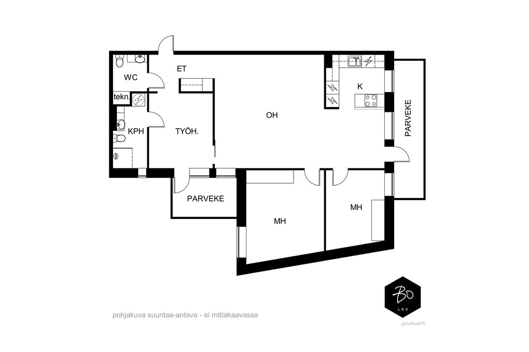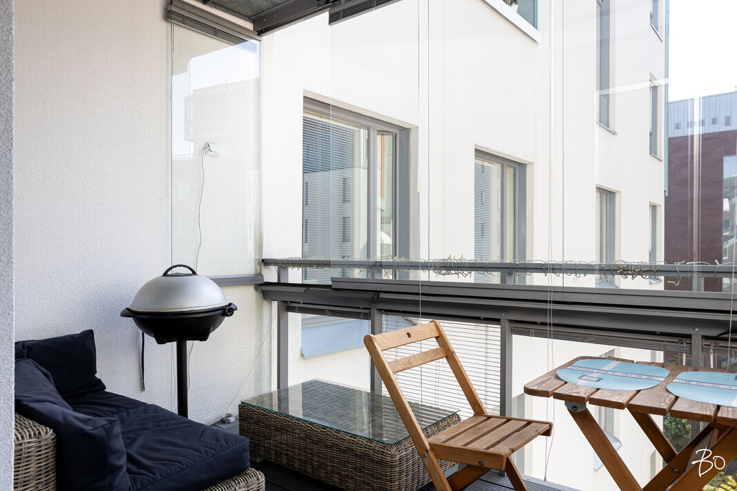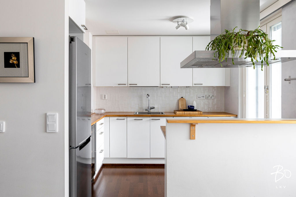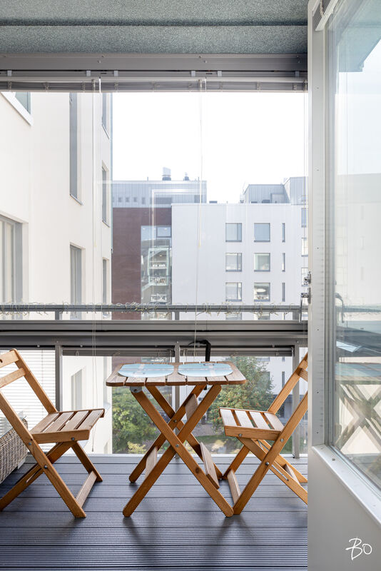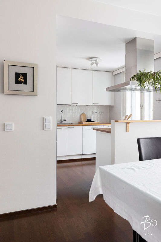 Keittiö on sekä käytännöllinen että nykyaikainen, ja olohuone on avara, tarjoten erinomaiset puitteet perheen tai ystävien kanssa ajan viettämiseen. Makuuhuoneet ovat tilavat ja tarjoavat runsaasti yksityisyyttä, joten tämä asunto on täydellinen myös lapsiperheille. Asunnossa on kaksi reilun kokoista parveketta.