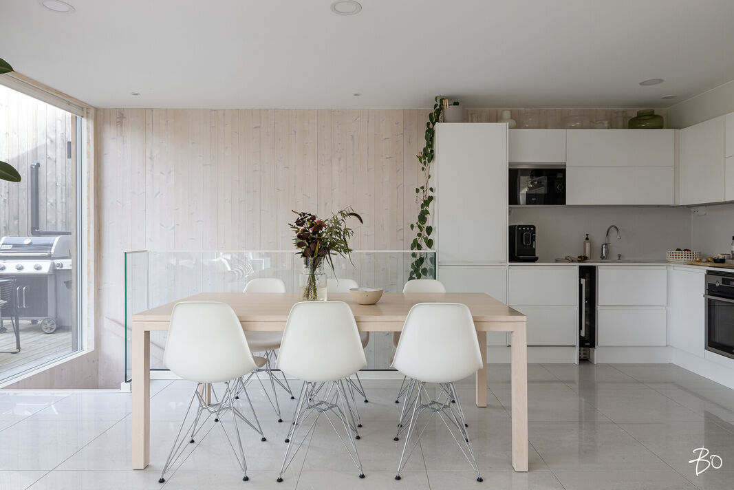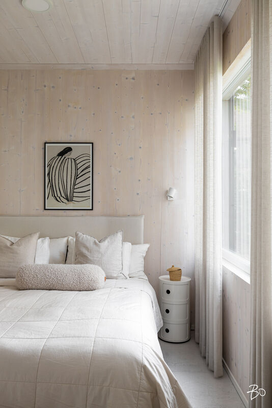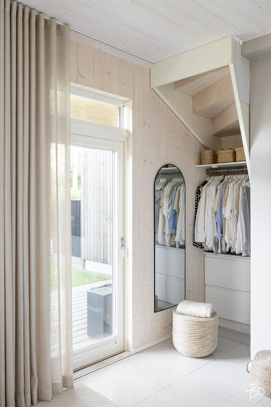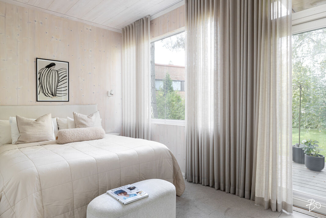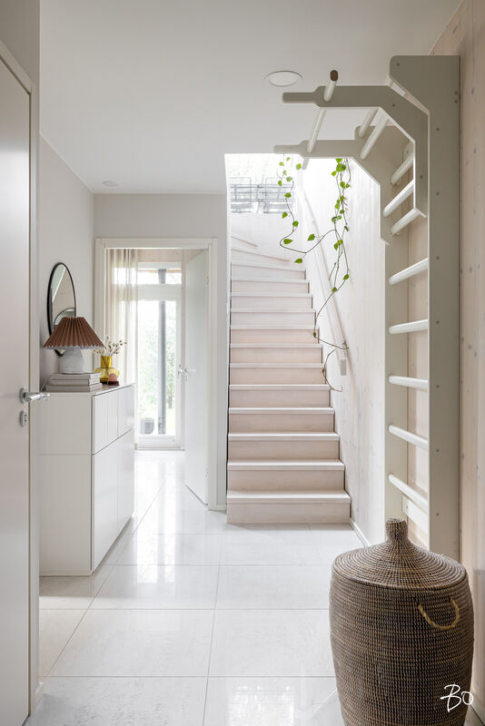 Vaaleat sisustussävyt korostavat tilan modernia tunnelmaa ja tekevät kodista harmonisen.