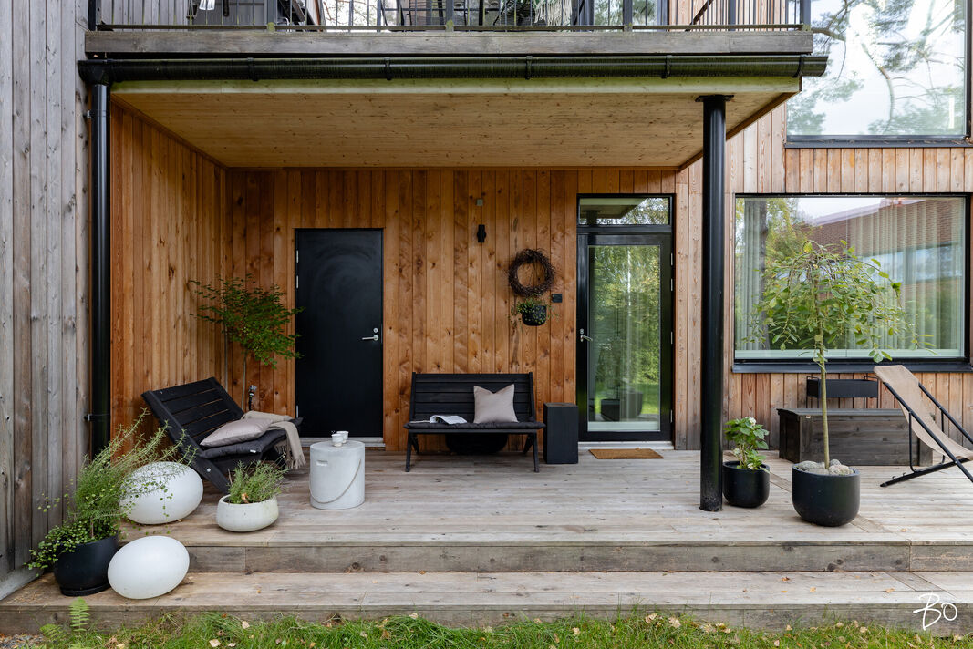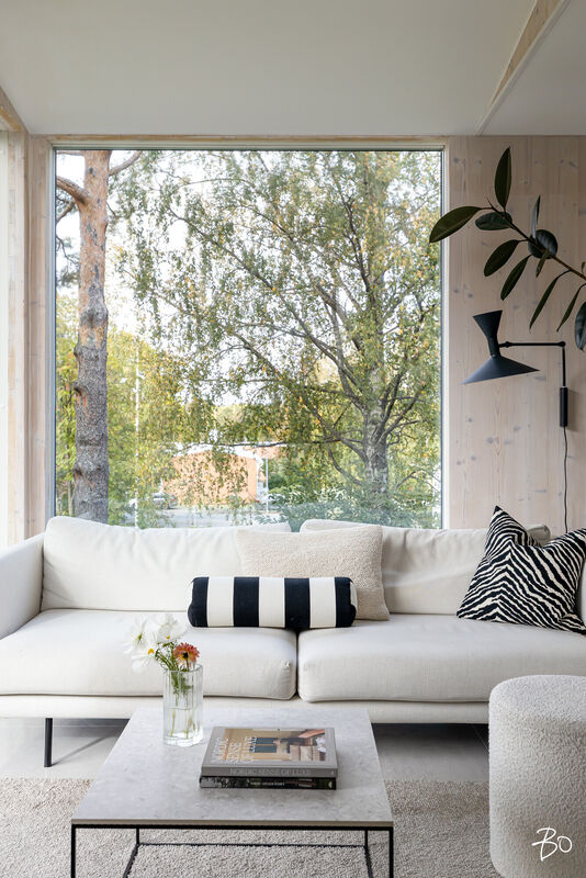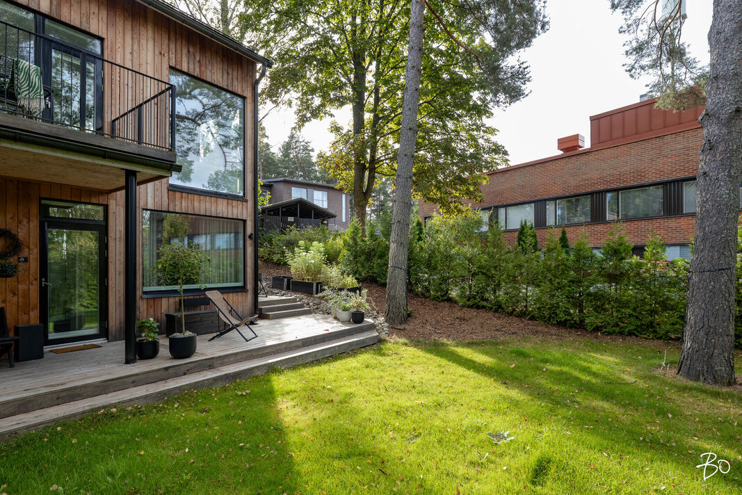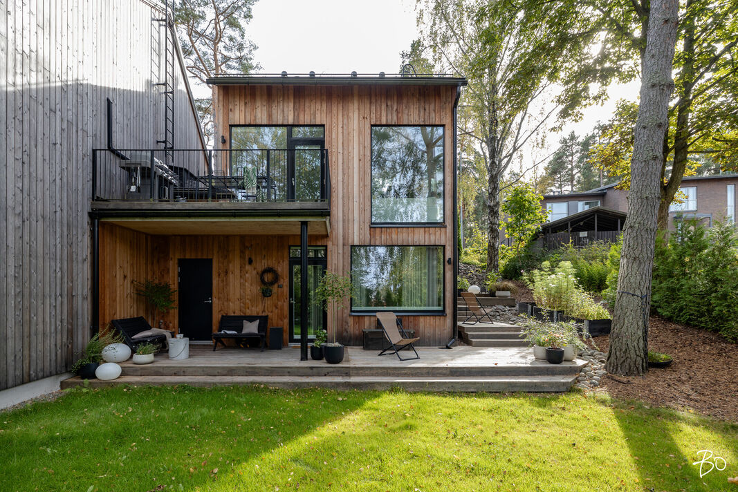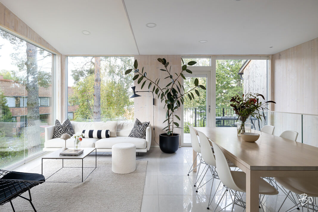 Tämä lähes uuden veroinen koti ja sen sisätilat hurmaavat heti ensisilmäyksellä. Korkea olohuone ja koko seinän korkuiset ikkunat luovat avaruutta ja valoa tuoden ympäröivän luonnon osaksi arkea.