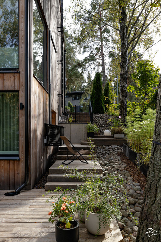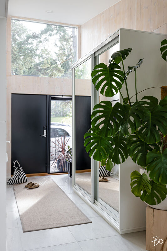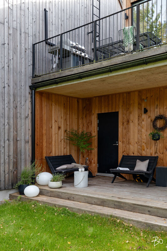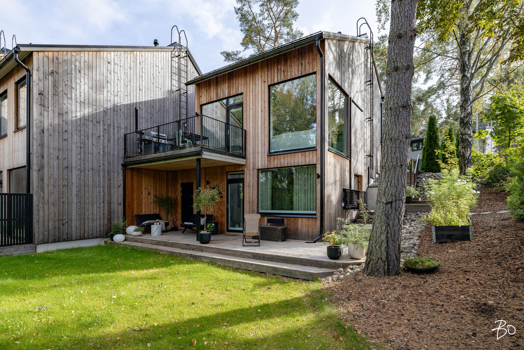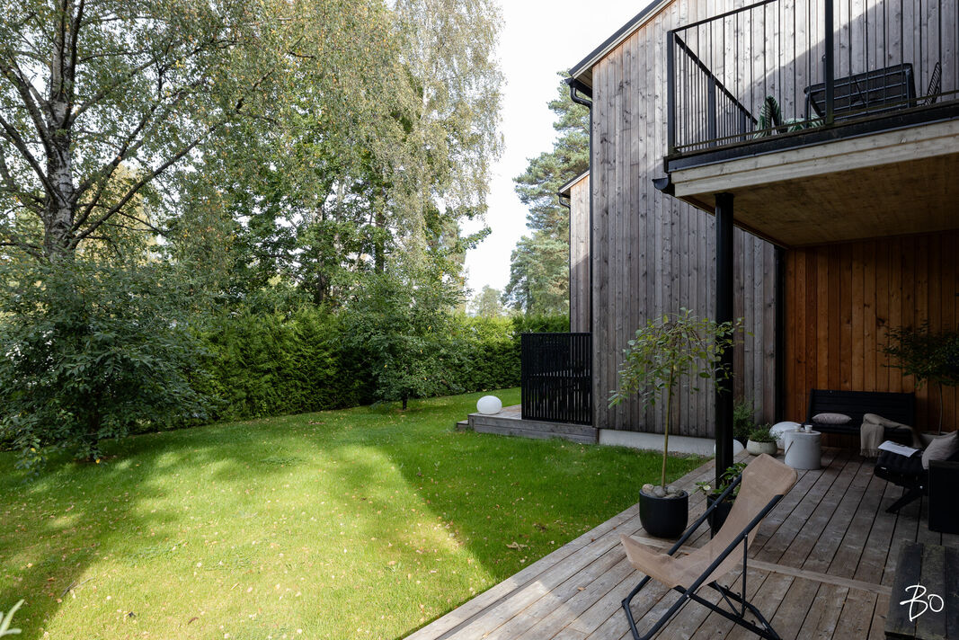 Tämä lähes uuden veroinen koti ja sen sisätilat hurmaavat heti ensisilmäyksellä. Korkea olohuone ja koko seinän korkuiset ikkunat luovat avaruutta ja valoa tuoden ympäröivän luonnon osaksi arkea.