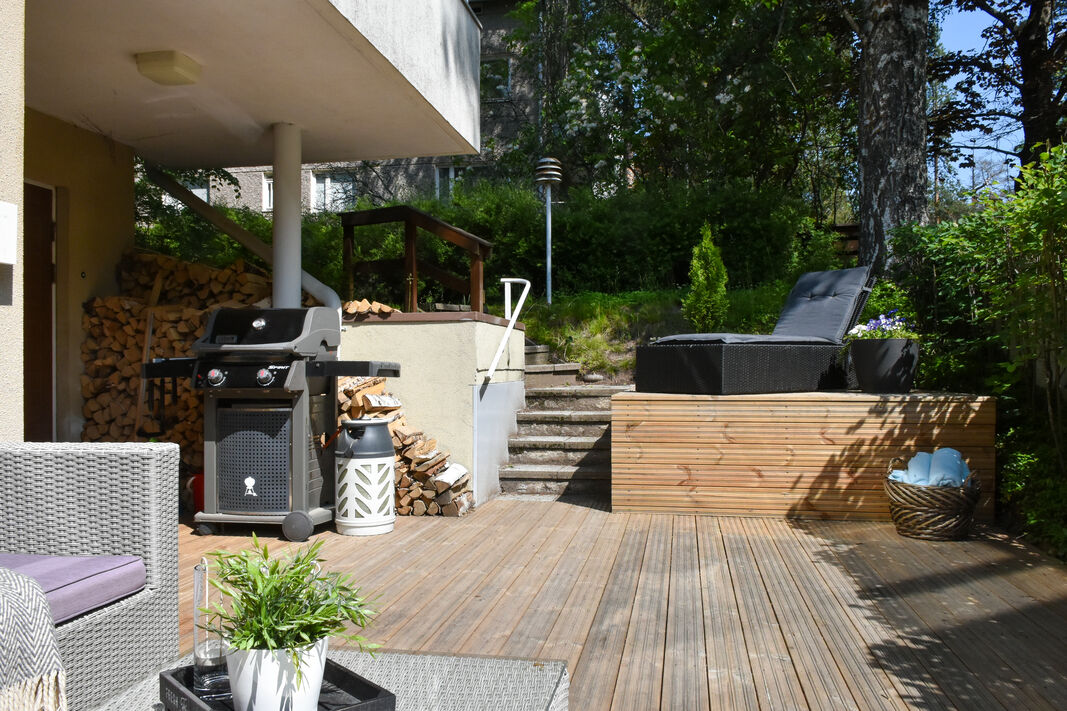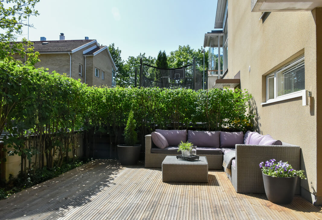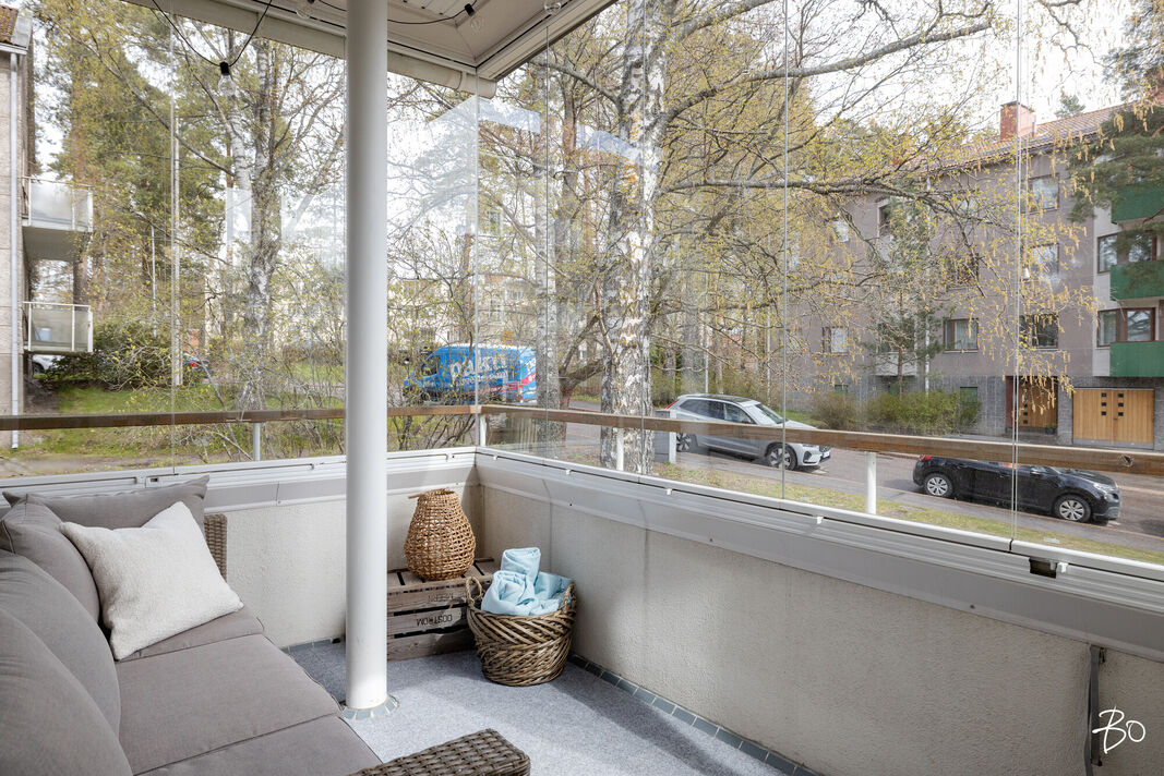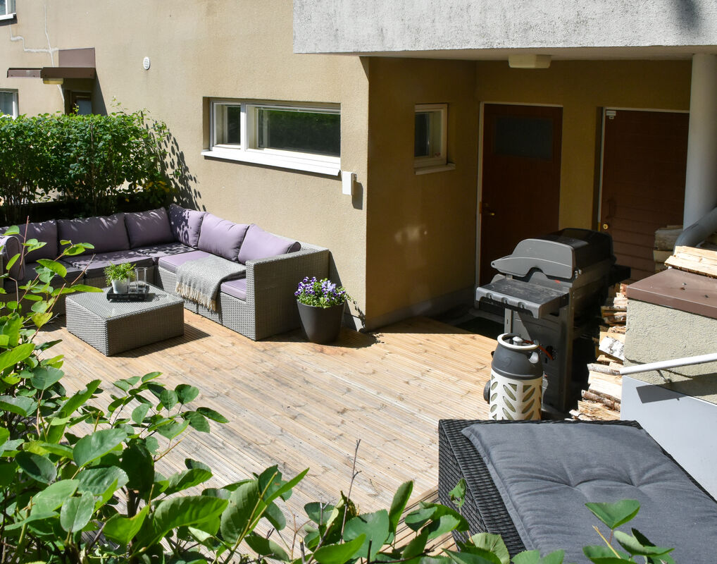 Piha-alueelta löytyy suojaisa terassi, jossa voi viettää aikaa läpi vuoden. Lasitettu parveke tuo lisätilaa arjen oleskeluun suojassa mutta avarasti. Oma tontti ja vain kolmen asunnon taloyhtiö tuovat asumiseen yksityisyyttä ja vakautta. Yhtiö on hyvin hoidettu ja rauhallinen.