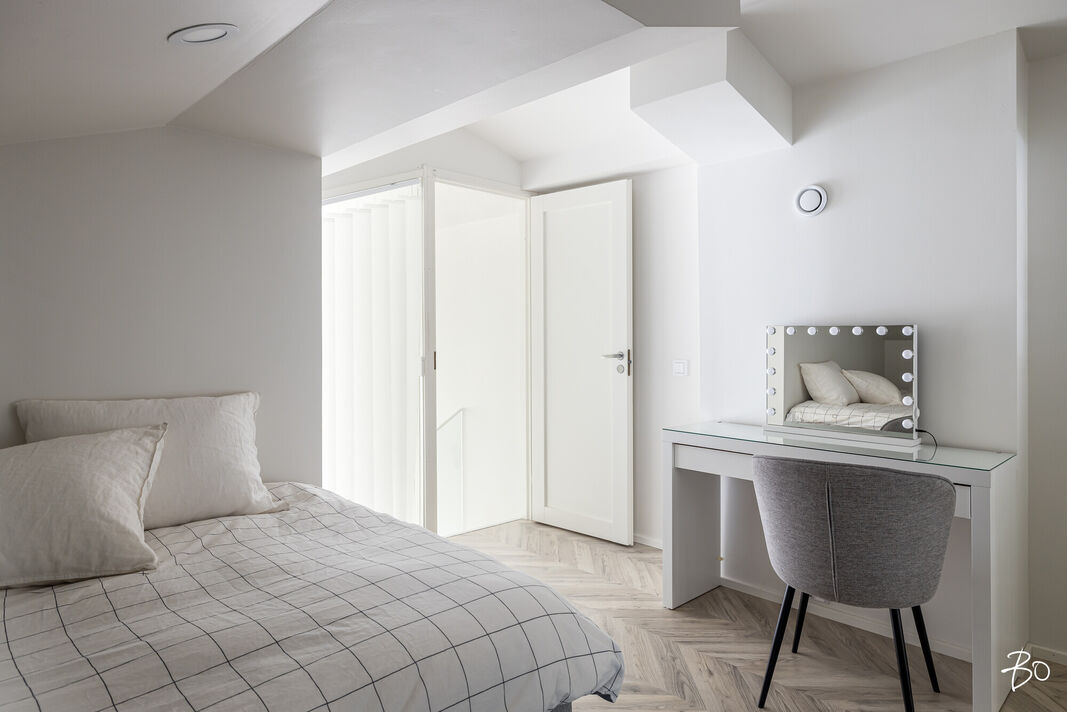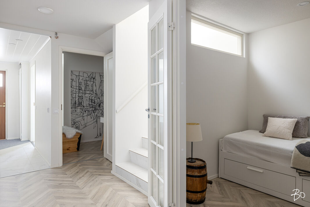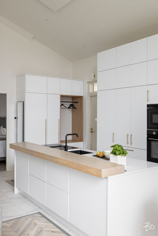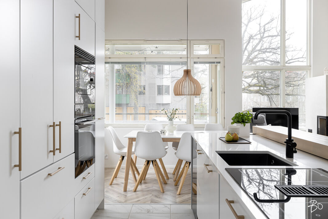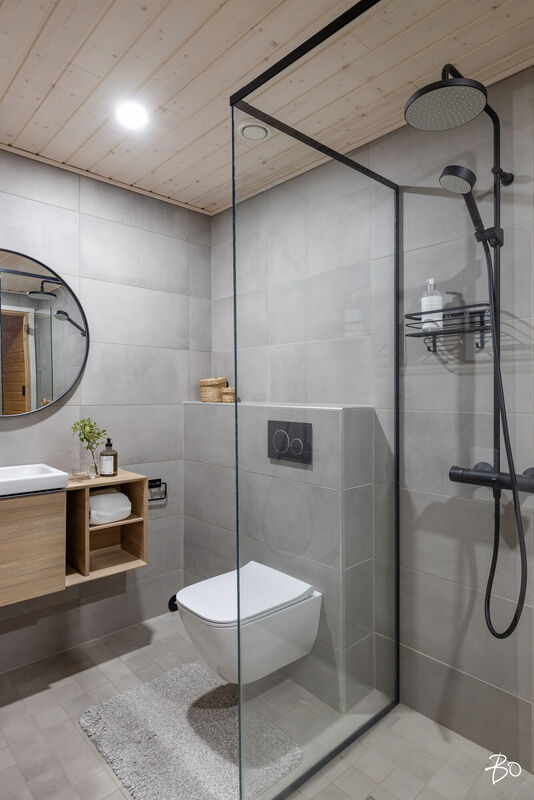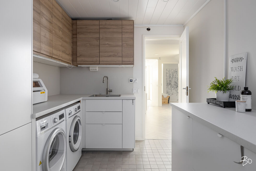 Kodin sydän on korkeaan tilaan avautuva olohuone, jossa luonnonvalo pääsee oikeuksiinsa. Skandinaavinen ilme ja huolella valitut materiaalit tuovat tilaan ajattomuutta ja selkeyttä. Huonejako tukee sekä omaa rauhaa että yhteistä aikaa, toimiva kokonaisuus, jossa asuminen mukautuu perheen eri vaiheisiin.