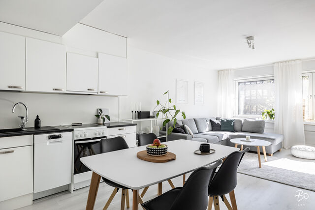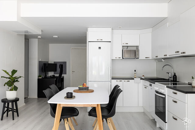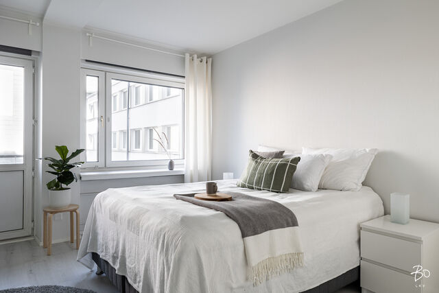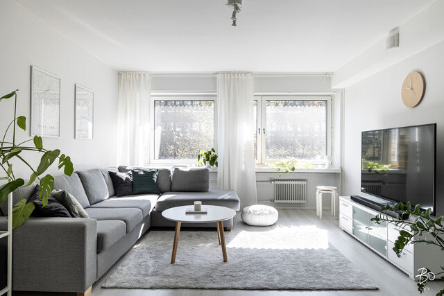 Asunto on remontoitu mukavaksi vaaleaksi kodiksi, säilyttäen samalla rakennusajan alkuperäistä henkeä. Vaaleat pinnat lisäävät avaruutta ja valoa jokaiseen huoneeseen. Modernissa pohjaratkaisussa avokeittiö yhdistyy olohuoneeseen. Makuuhuone ja parveke avautuvat rauhallisen sisäpihan suuntaan, tarjoten omaa rauhaa keskellä kaupunkia. 2017 uusittu vaalea kylpyhuone on ajaton ja ratkaisuiltaan toimiva.
