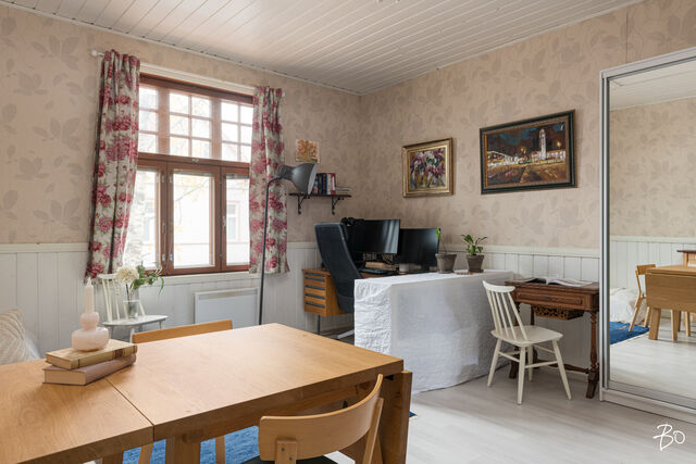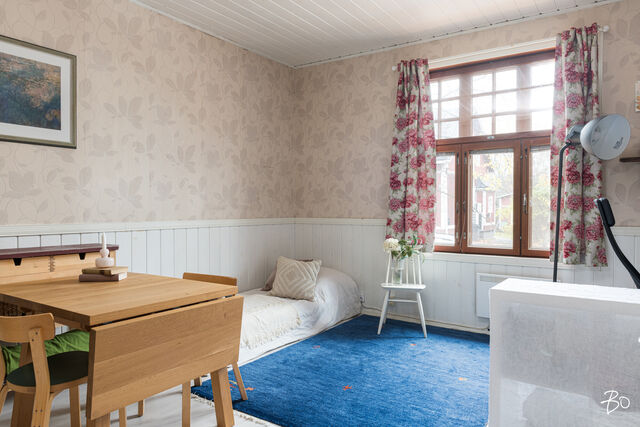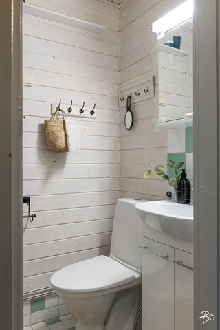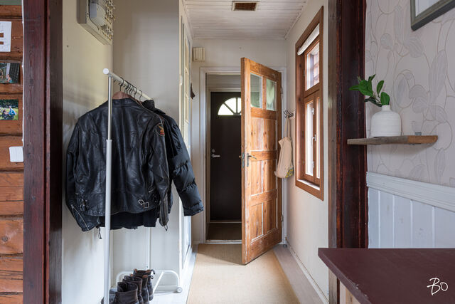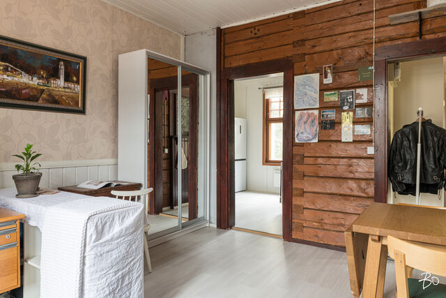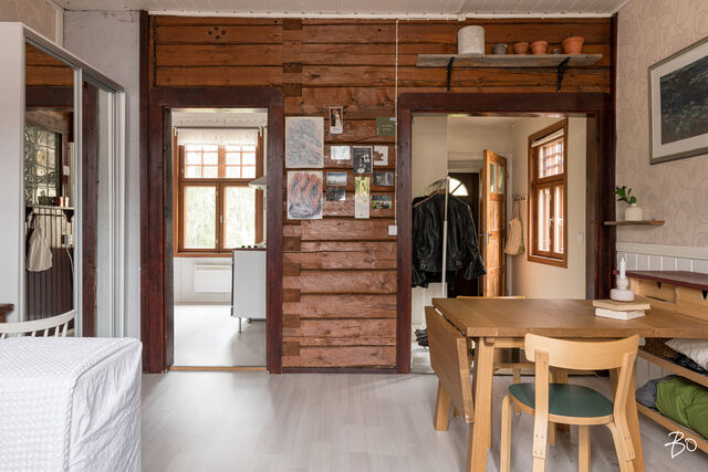 Juuri myyntiin tulleessa kodissa näkyy sopivasti hirsitalon alkuperäistä vanhaa henkeä. Keittiö on viihtyisän kokoinen ja Porin Matti antaa tilaan lämpöä ja kodikkuutta. Iso olohuone on sisustettavissa monella tapaa; hyvin tilaa niin oleskeluun kuin makuuhuoneeksi. Kylpyhuoneessa on wc, allas- ja peilikaappi, suihku ja lattialämmitys. Talon päädyssä, ensimmäisessä kerroksessa sijaitsevaan asuntoon on pihan puolelta oma sisäänkäynti avoimen kuistin kautta.