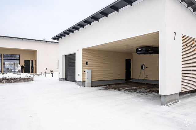 Omalla 1420m2 rauhallisella tontillaan sijaitseva talo on kuin unelma keskellä kaunista peltomaisemaa. Talon piha-alue on suunniteltu huolellisesti, tarjoten niin lapsille kuin aikuisillekin tilaa nauttia ulkoilmasta. Erityisen tilavan autotallin ja kahden auton katoksen ansiosta pysäköinti on helppoa, ja runsaasta varastotilasta löytyy paikka kaikille tarpeellisille tavaroille.