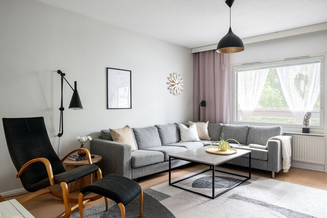 Tämä asunto on ihanteellinen valinta perheelle, joka etsii rauhallista ja mukavaa asumista hyvien kulkuyhteyksien ääreltä suositulta asuinalueelta.