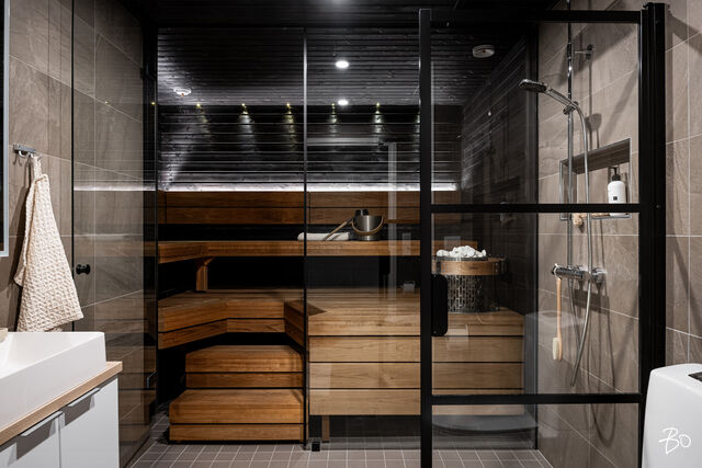 - Saunan laajennus, Lumisauna lauteet, upotettu 9kw etäohjattava Harvia kiuas.