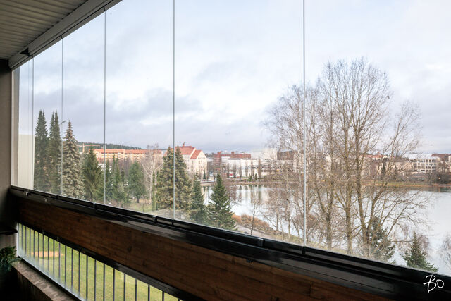 Asunnossa on kaksi makuuhuonetta, tilava olohuone sekä siistikuntoinen remontoitu laadukas keittiö. Kaikista asunnon isoista ikkunoista avautuu uskomattoman upeat näkymät suoraan Valkeisenlammelle. Tästä eivät näkymät enää parane! Olohuoneesta sekä toisesta makuuhuoneesta on lisäksi kulku koko asunnon levyiselle lasitetulle parvekkeelle.